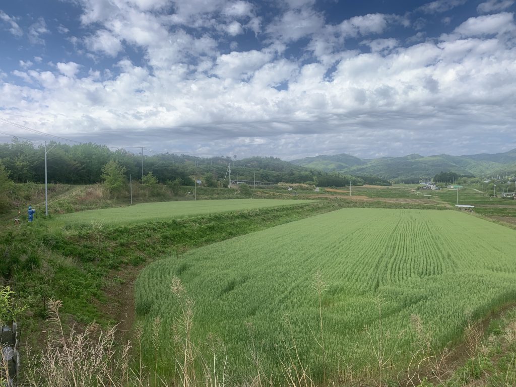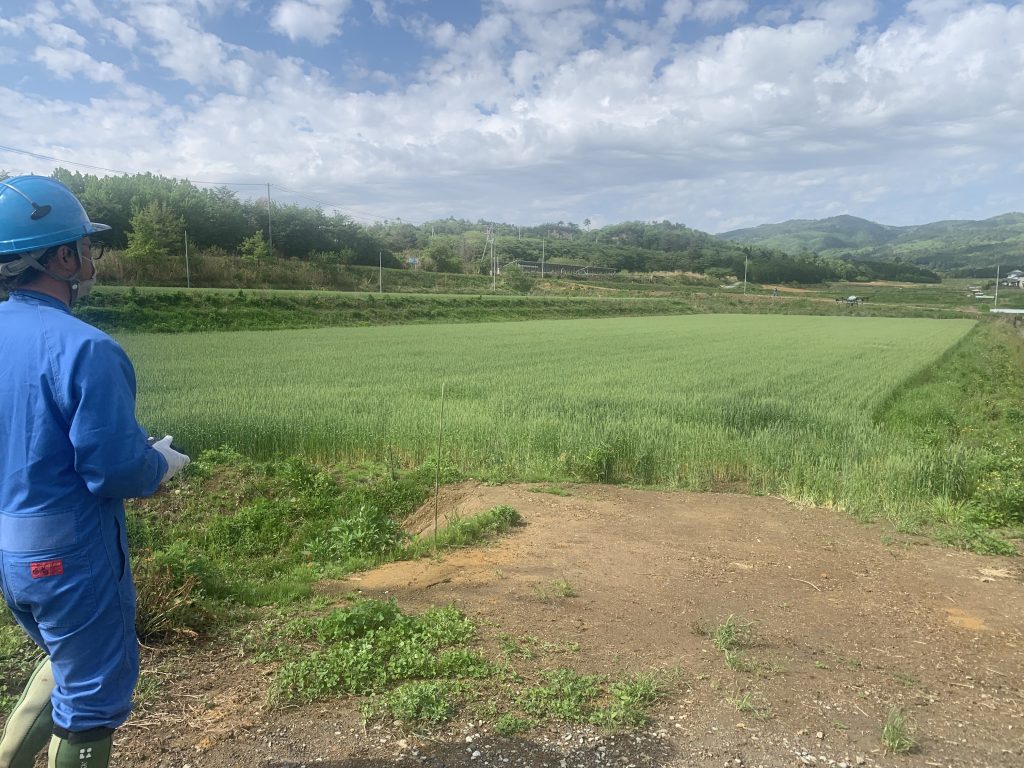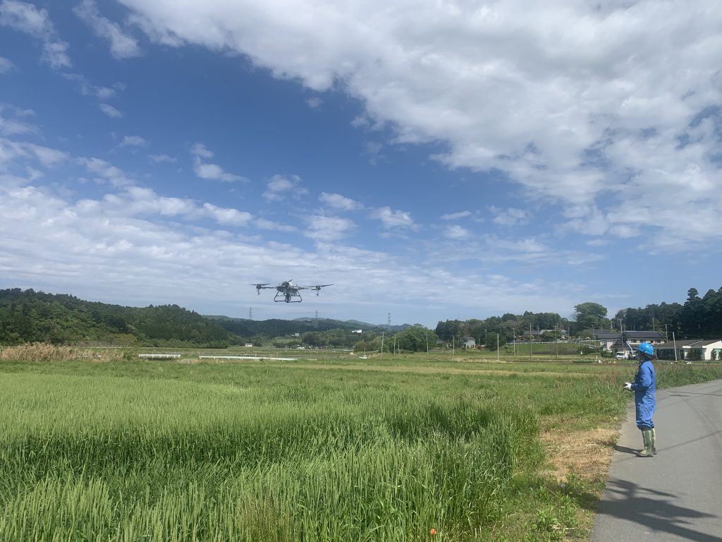 広野町の小麦畑でドローンによる防除作業を実施しました。