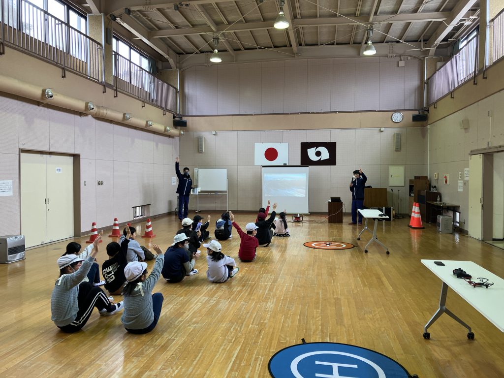 約16名の小学生と一緒に初日はクイズを交えた操縦体験、2日目はプログラミングによるドローンの飛行を行いました。ビックリするくらい飲み込みが早く、違う小学校の生徒同士仲良く協力して実行しているのが印象的でした。