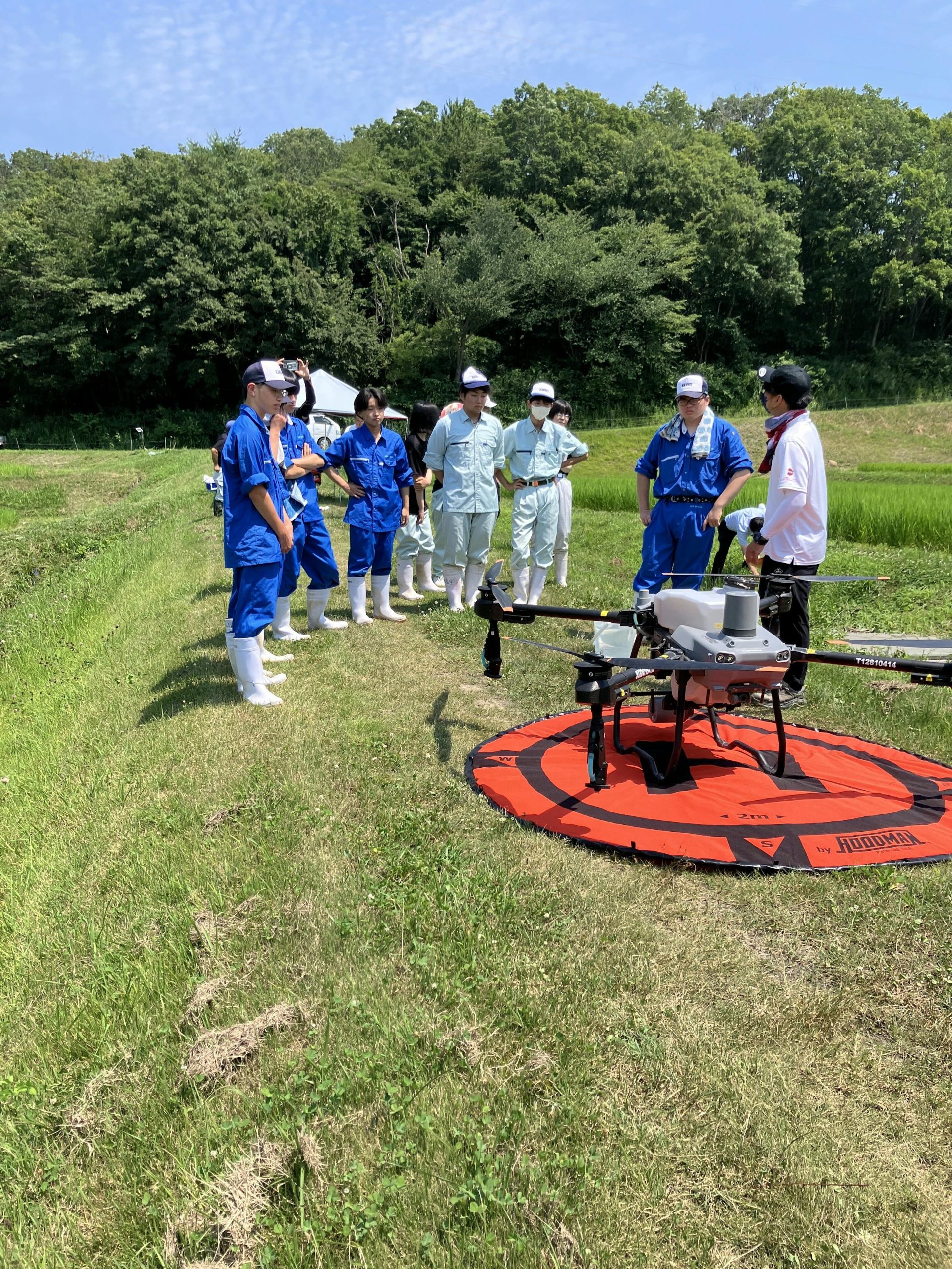 7月末、福島県立磐城農業高校で特別講義を行いドローンによる農薬散布の演習を実施しました。