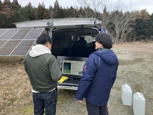 その後、農業機を使用して基本操作・散布操作の練習を行い、その後実践的な操縦を学んでいただきました。