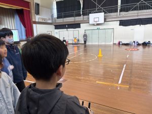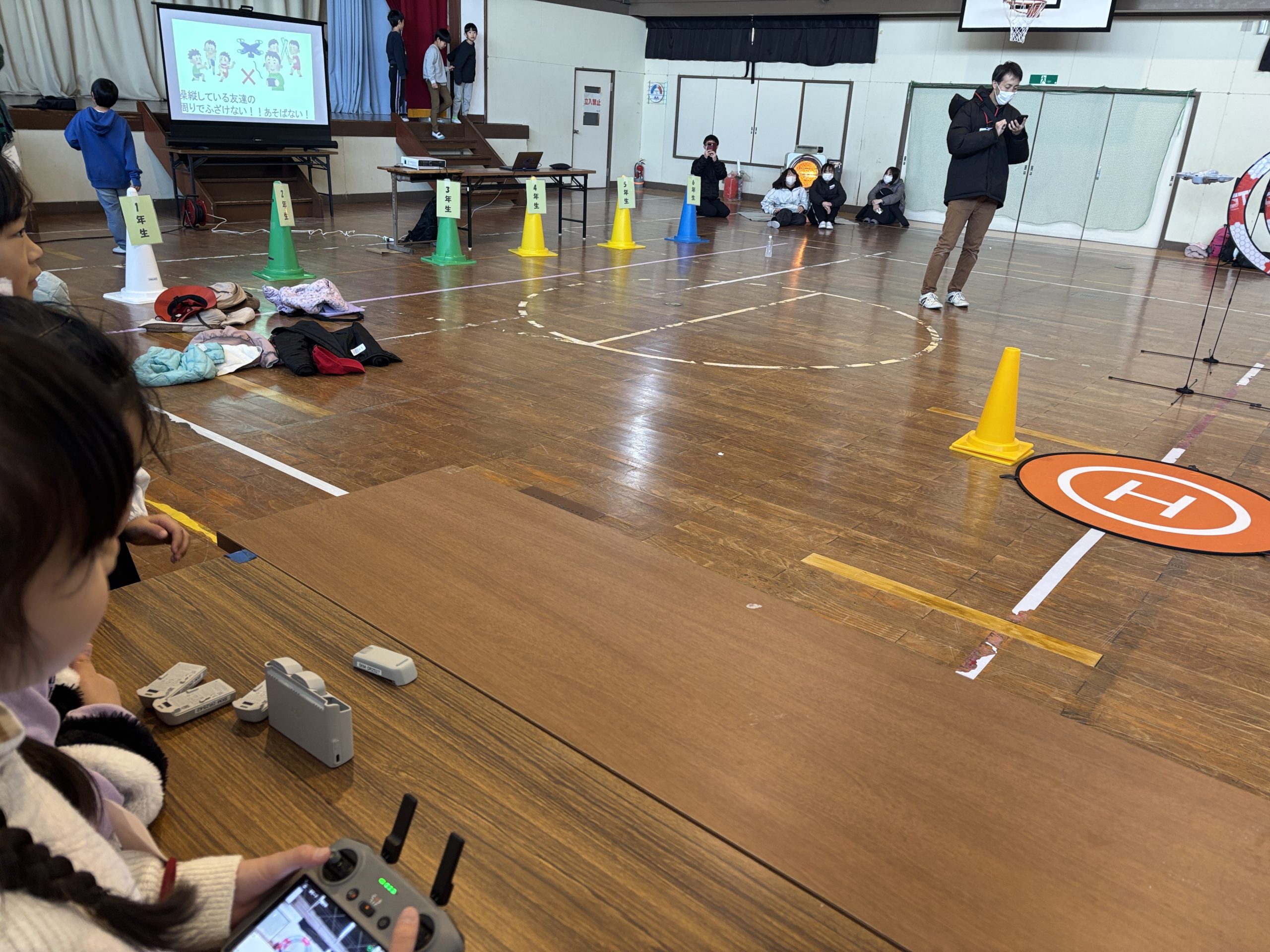 当日は1年生から6年生までの約40名の生徒が参加し、ほとんどの児童が初めて触れるドローンに興味津々の様子。